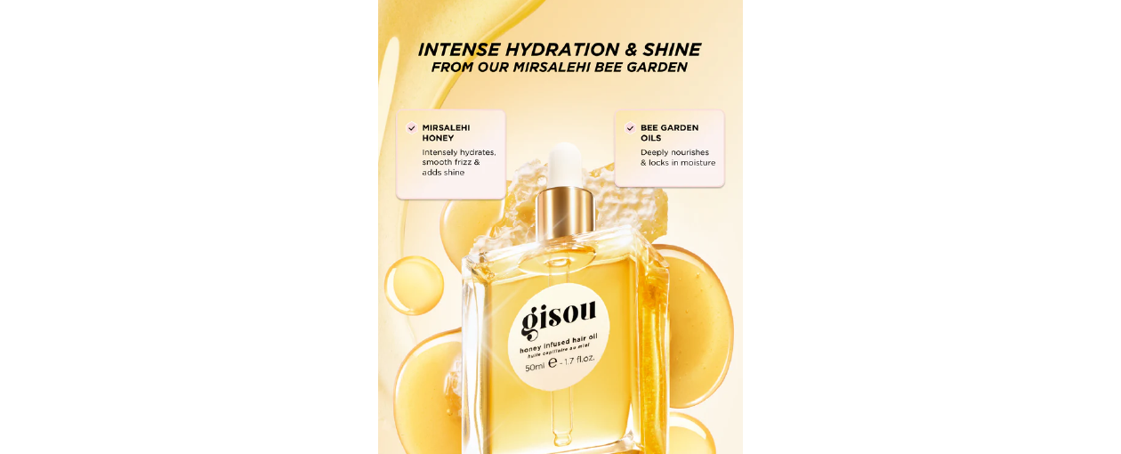 The Honey Infused Hair Oil by Gisou is a global bestseller and award-winning product, specifically formulated to hydrate, boost shine, smooth frizz, and protect hair from heat styling up to 230°C (450°F). Powered by the rich, natural benefits of Mirsalehi Honey and Bee Garden Oils, this luxurious hair oil is designed to nourish your hair deeply, ensuring it stays glossy, soft, and healthy. Suitable for all hair types, this oil has become a community favorite among Gisou fans worldwide.